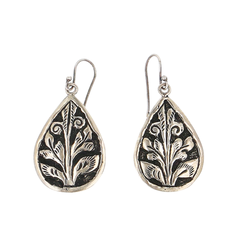 A handcrafted silver earring inspired by the leaf carvings at Baijnath Temple in Uttarakhand.