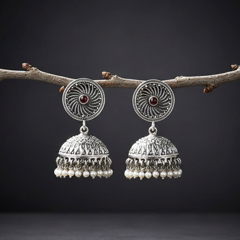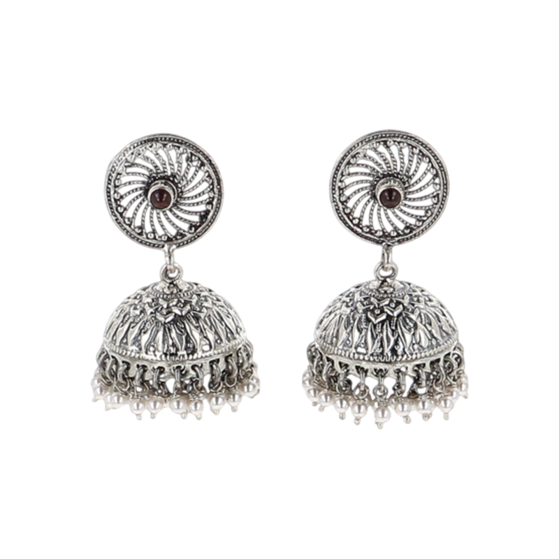 Spiral Stud and Dome-Shaped Silver Jhumki