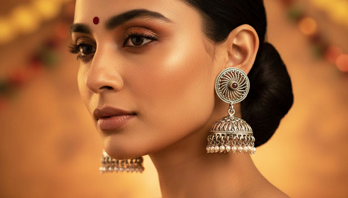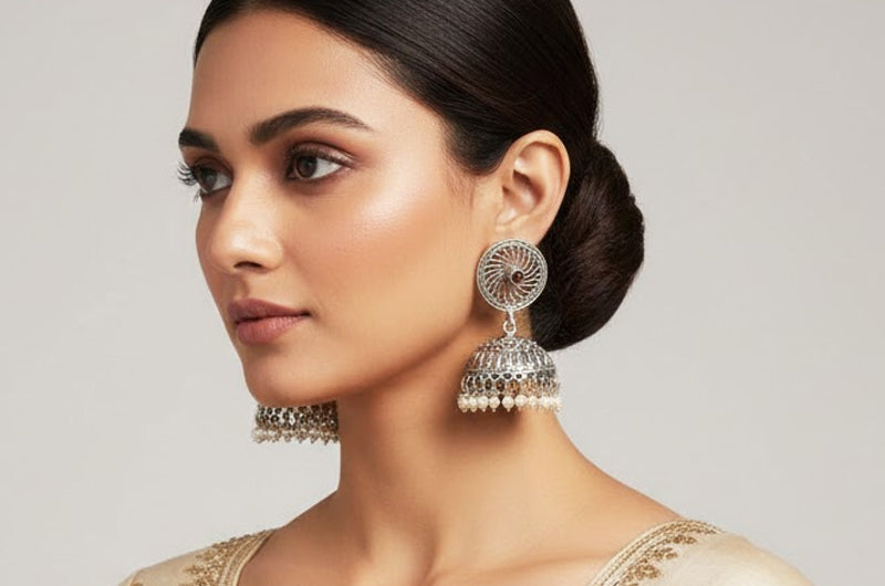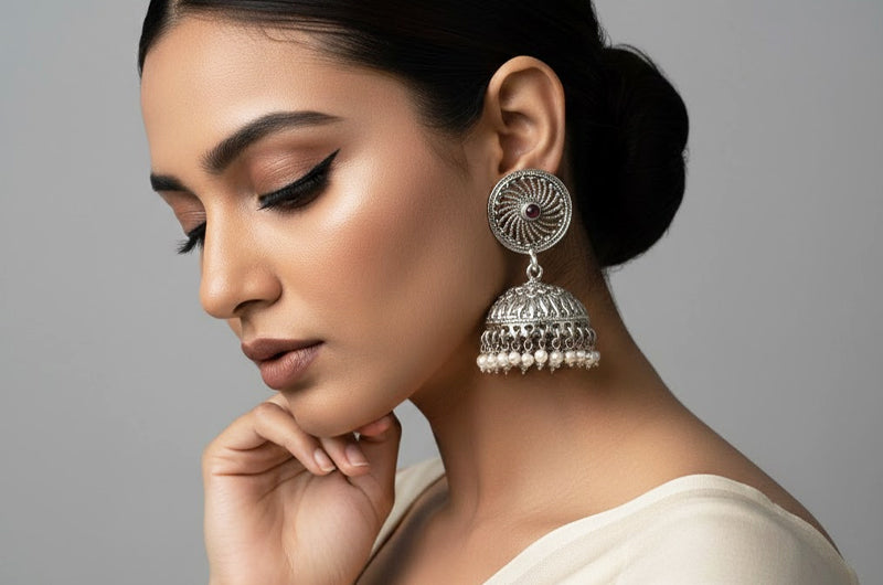 A traditional silver jhumki rooted in Uttarakhand’s cultural rhythm and heritage design.