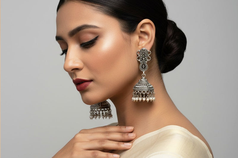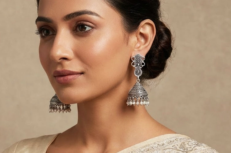 In the hills of Uttarakhand, a striking silver jhumki echoes the gentle chiming of temple bells. intended to honor heritage, sound, and movement.