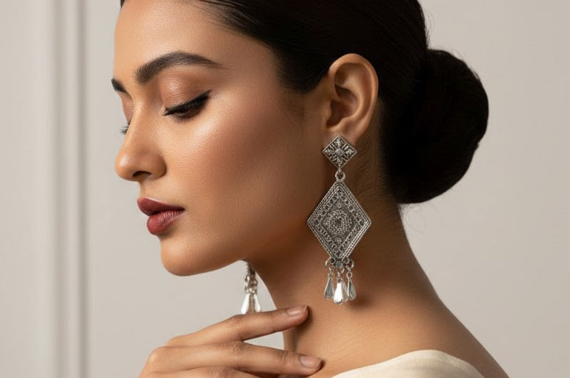 Silver jewellery should be worn after applying makeup, perfume, or lotions to avoid chemical contact. Keep it away from water, sweat, and harsh substances, and remove it before bathing, exercising, or sleeping. When not in use, store the jewellery in a dry, airtight pouch to prevent tarnishing. Clean gently with a soft, dry cloth after wear. Natural tarnishing may occur over time and can be easily restored with proper polishing.