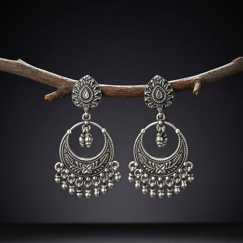 Handcrafted by skilled Himalayan artisans, this piece combines high-relief engraving, sculptural framing, and detailed bell-making techniques. Each element is meticulously shaped to preserve traditional Pahadi silversmithing, translating forest and temple motifs into a richly textured, wearable expression of mountain craftsmanship.