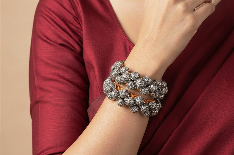 A classic silver pauchi that captures the beat of everyday wear and peasant life.