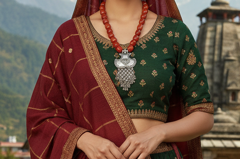 The Pauri-Peak Scarlet Necklace draws its essence from the revered Pahadi Munga-Mala, traditionally worn as a symbol of protection, prosperity, and spiritual grounding in the Himalayan highlands. The deep crimson beads echo sacred tones associated with strength and vitality, often linked to rituals and ceremonial adornment in Devbhoomi. This necklace stands as a cultural emblem, celebrating the resilience, dignity, and rooted identity of mountain communities through bold yet meaningful design.