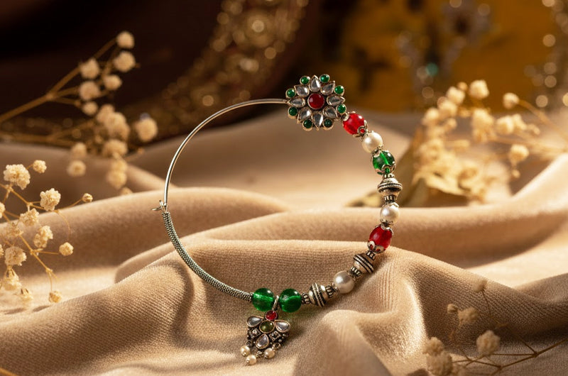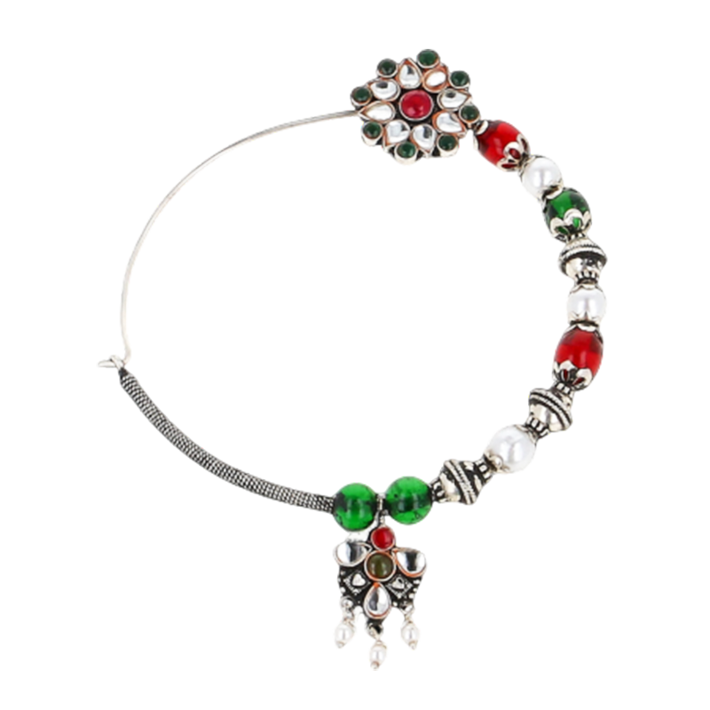 A heritage silver nath inspired by Uttarakhand's beautiful stone and bead embellishments.