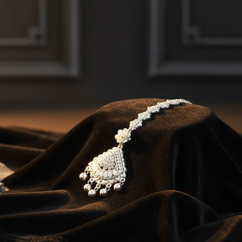 Shaped by skilled Himalayan artisans, this nath highlights traditional stone setting and fine silver detailing techniques. Each element is assembled with care, preserving seed-and-bead ornament traditions passed through generations and translating them into a timeless silver piece rooted in Uttarakhand’s cultural identity.