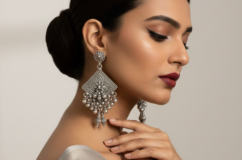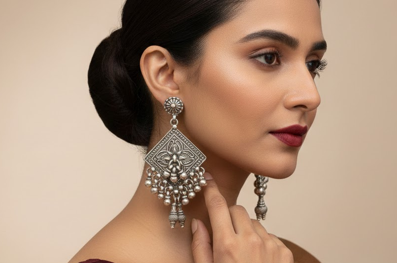 Silver jewellery should be worn after applying makeup, perfume, or lotions to avoid chemical contact. Keep it away from water, sweat, and harsh substances, and remove it before bathing, exercising, or sleeping. When not in use, store the jewellery in a dry, airtight pouch to prevent tarnishing. Clean gently with a soft, dry cloth after wear. Natural tarnishing may occur over time and can be easily restored with proper polishing.