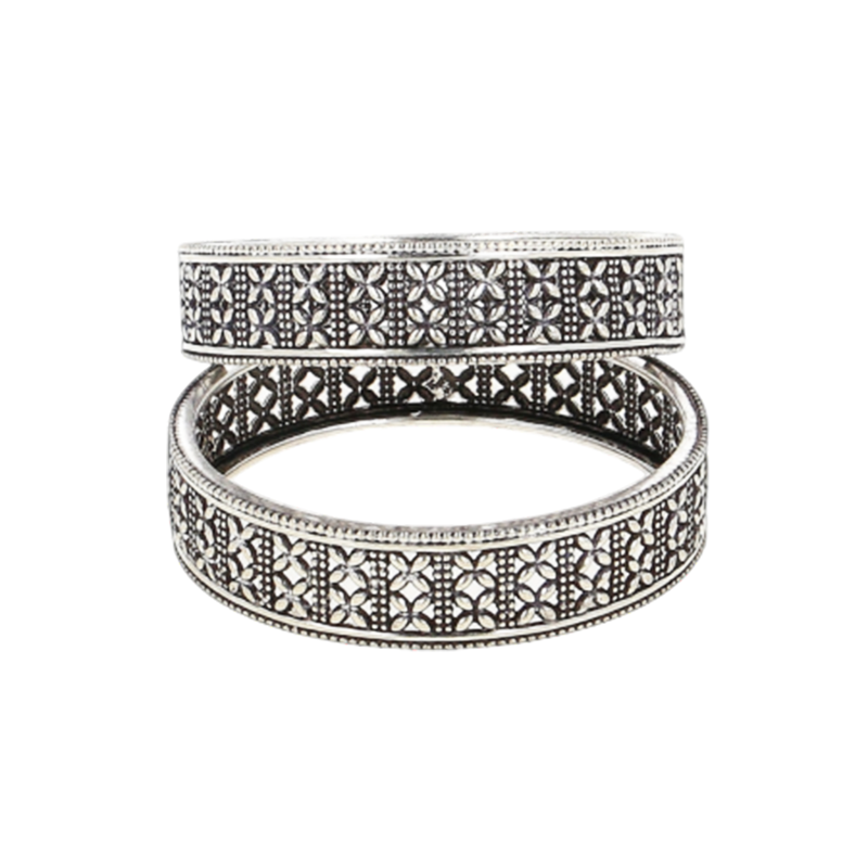 Compact surface work, which gives the design a rich, collected appearance, defines this pair of bangles. Inspired by ancient artisan techniques where strength derives from accumulation and repetition, the pattern feels constructed rather than put. The smooth interior surface guarantees comfort, and the robust round shape adds durability. Both everyday wear and special occasions are appropriate.