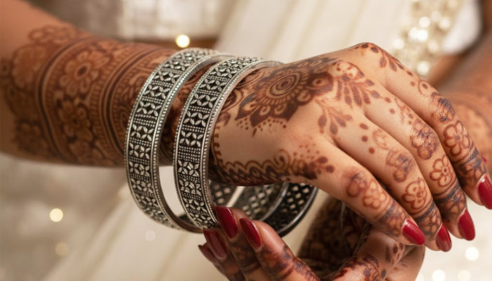 Handcrafted by skilled Himalayan silversmiths, these bangles combine precise surface detailing with robust construction techniques. Each piece preserves traditional design principles, transforming Uttarakhand’s age-old craftsmanship into durable, wearable jewellery suitable for everyday and festive occasions.
