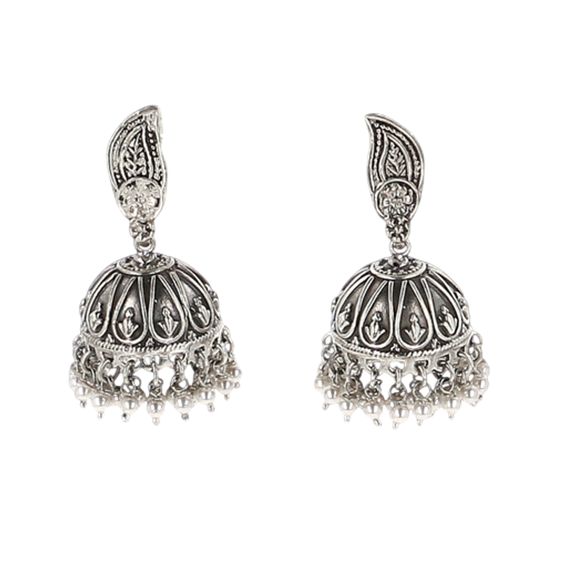Leaf-Inspired Stud and Dome-Shaped Silver Jhumki
