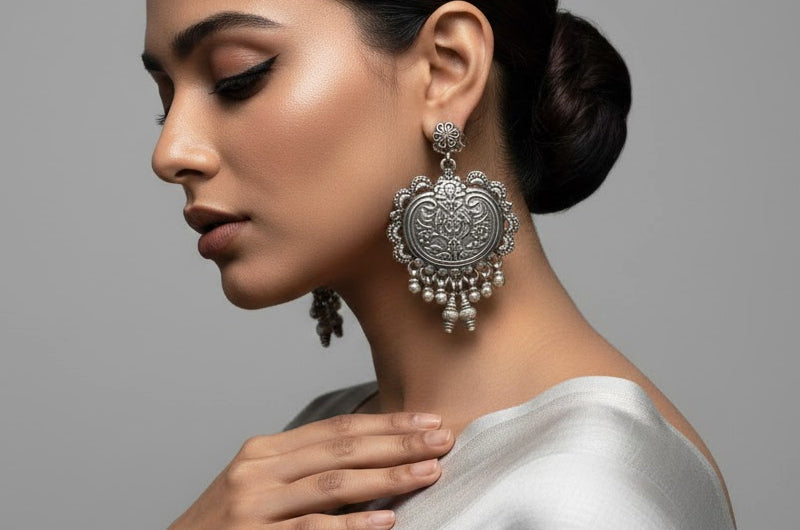 Silver jewellery should be worn after applying makeup, perfume, or lotions to avoid chemical contact. Keep it away from water, sweat, and harsh substances, and remove it before bathing, exercising, or sleeping. When not in use, store the jewellery in a dry, airtight pouch to prevent tarnishing. Clean gently with a soft, dry cloth after wear. Natural tarnishing may occur over time and can be easily restored with proper polishing.